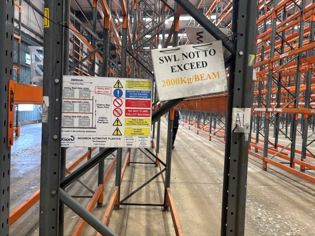 Works were carried out using a phased strip-out approach to maintain control of the working area and minimise disruption. Trained operatives dismantled the racking using appropriate access equipment, with components lowered to floor level rather than dropped. Mechanical handling equipment was used for the movement and stacking of frames and beams once removed.