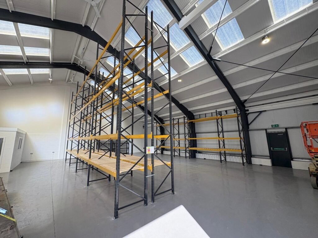 Warehouse Racking installed with decking boards, and some shelving racking in this industrial unit in Banbury Oxon